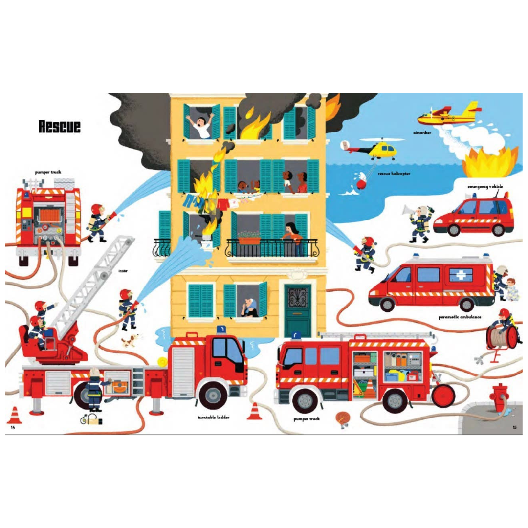 Cars, trucks, trains, planes, ships, and so many more! Almost 100 vehicles of all shapes and sizes fill the pages of this oversized book that's just right for fans of all things that go. Rotate a wheel to mix the cement in a cement mixer, slide a tab to help a firefighter climb up the fire truck ladder, and lift a flap to peek inside a jumbo jet!