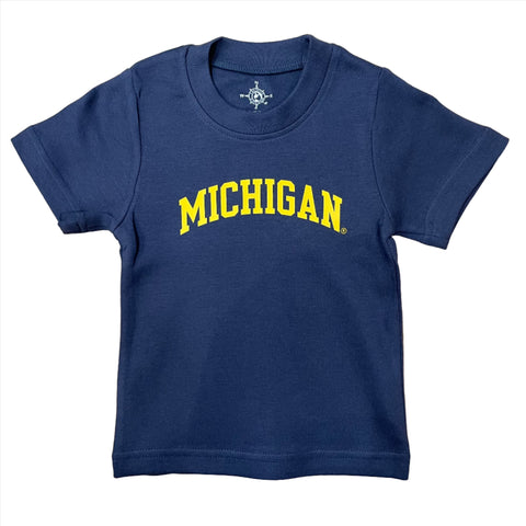 Get ready to cheer on your team in style with this Curved Michigan KIDS Short Sleeve Tee. With its curved design and short sleeves, this tee is the perfect top for game day. Show your support for your favorite team and look great while doing it. Go team!