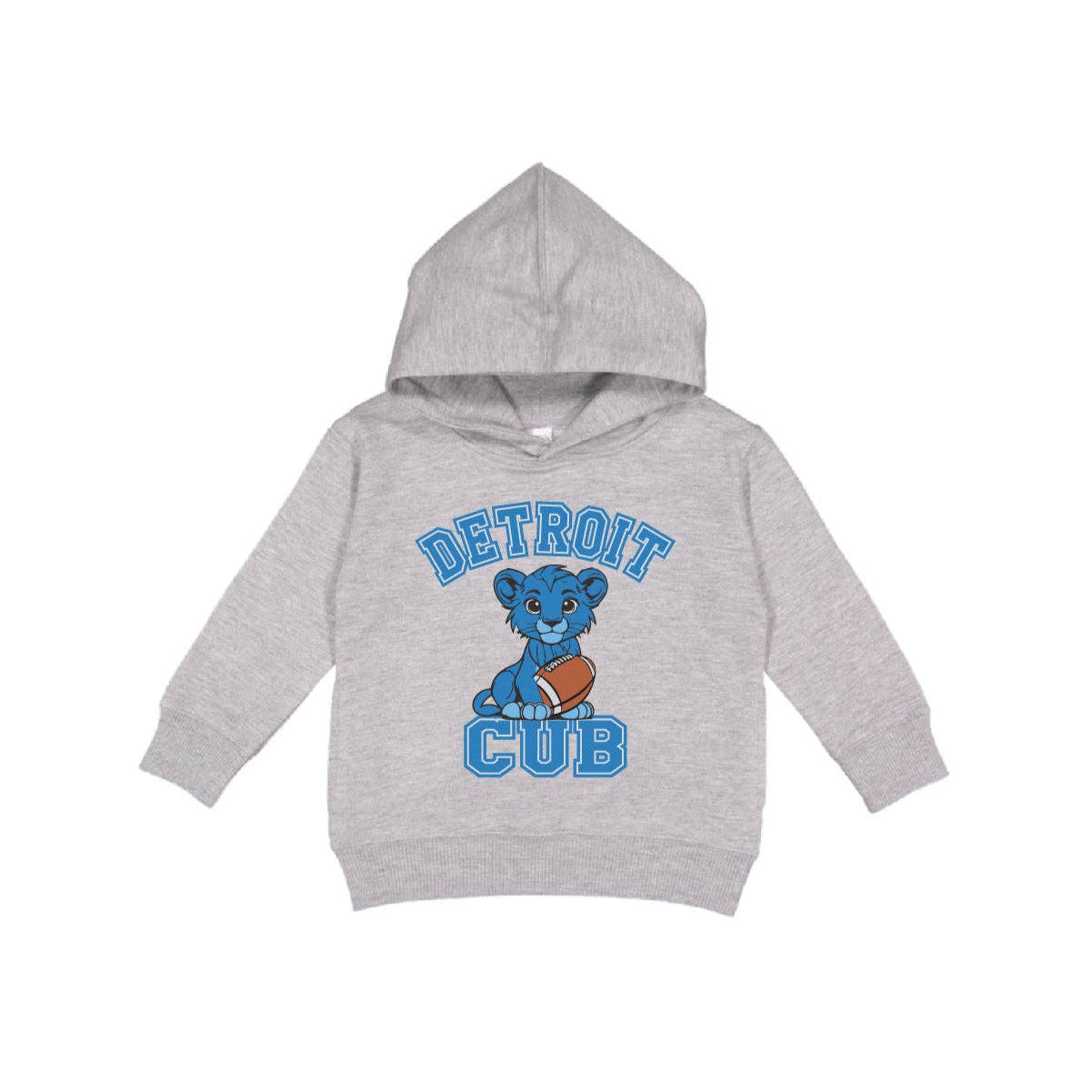 Keep your little fan cozy while showing off Detroit spirit with the Detroit Cub Hoodie. Featuring an exclusive Ink Detroit design of a playful cub holding a football, this hoodie is perfect for budding Lions fans. Made from a soft cotton-poly fleece blend, it’s warm yet breathable for everyday wear. A jersey-lined hood, ribbed cuffs, and waistband add extra comfort and durability, while side-seam pockets keep tiny hands warm.