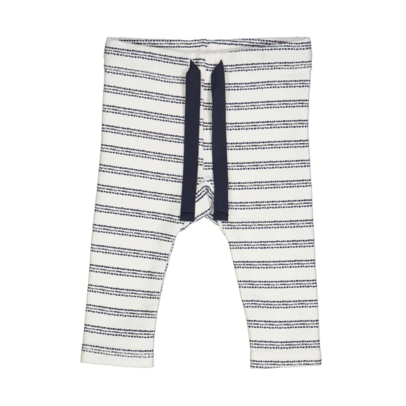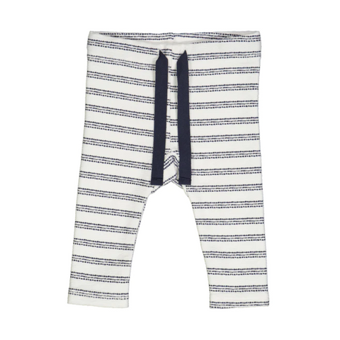 These Cream Night Blue Stripe Pants are the perfect combination of cuteness and comfort. Made with soft, 100% organic cotton jacquard jersey, these pants feature an elastic waistband and ties for a customizable fit.