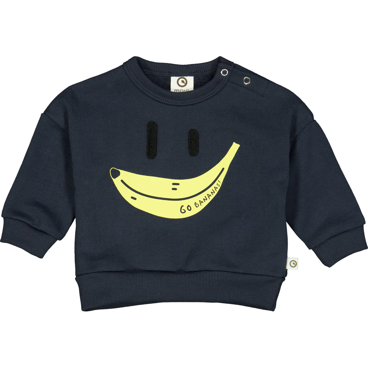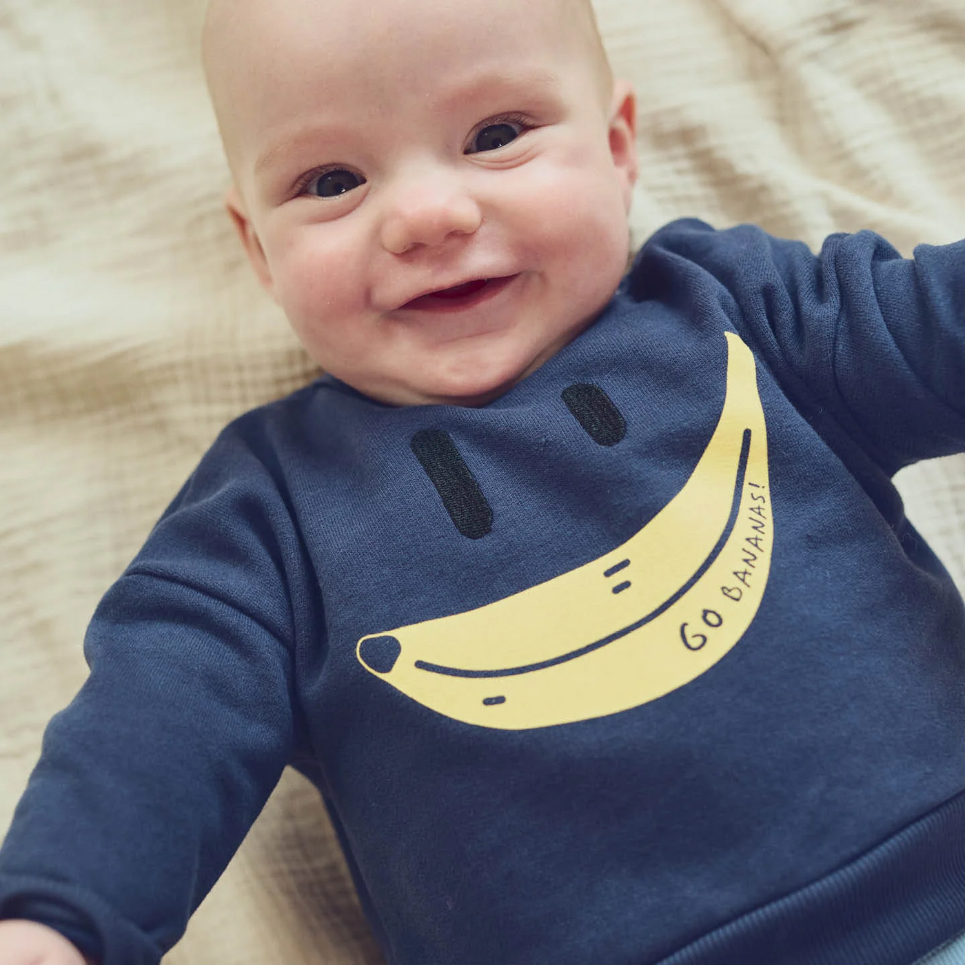 This cozy sweatshirt features a cheerful banana graphic on the front, adding a playful touch to your little one’s outfit. It has convenient press buttons at the neck for easy dressing. Crafted from 100% organic unbrushed cotton, it promises softness and comfort all day long.