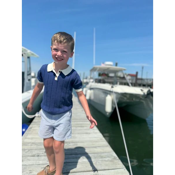 Charming in navy, this knitted polo is perfect for spring. Its playful design and super soft comfort make it a must-have for any wardrobe. Ollie will have you looking and feeling your best all season long. Made from 100% Cotton.