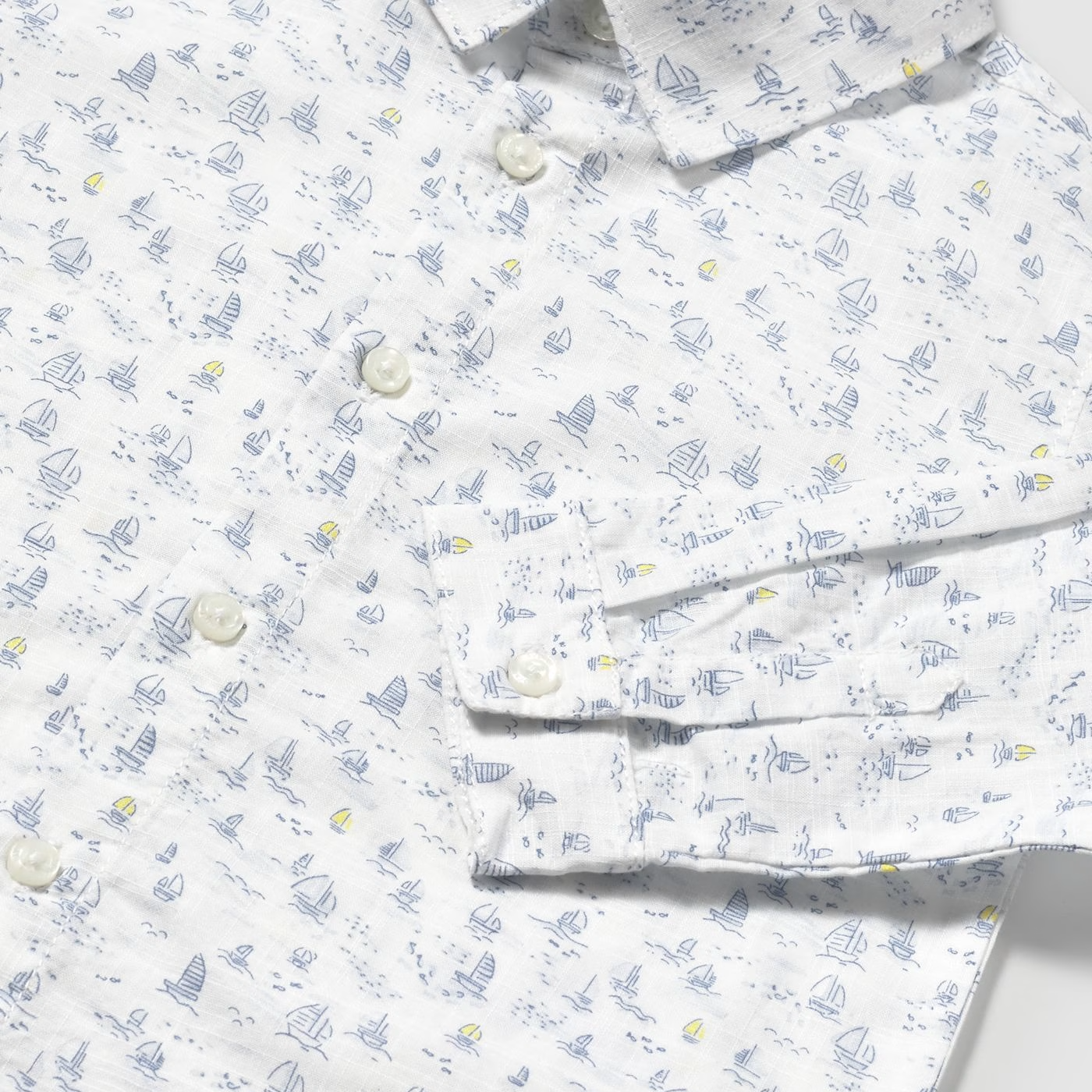 This adorable baby boy's long sleeve button-down shirt is perfect for your little sailor! Crafted from 100% cotton, it features a charming hand-drawn navy and yellow sailboat print that adds a playful touch to any summer outing. Ideal for vacations, holidays, or family gatherings, this shirt combines comfort and style, ensuring your lil guy looks dapper while staying cool. Dress him up for those special moments and let him sail through the day in style!