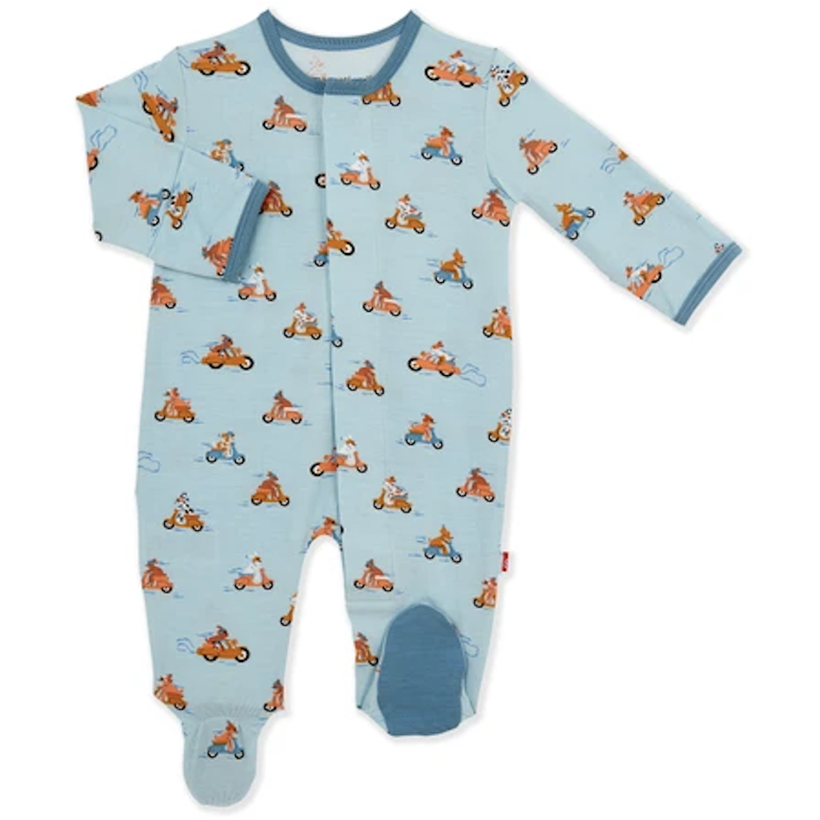 A soft, stylish all-day and all-night wardrobe staple with smart magnetic fasteners that makes changing time painless. With our no over-the-head design, simply open the outfit, insert baby, and BOOM, DONE! - the footie practically closes itself. Machine wash as directed.