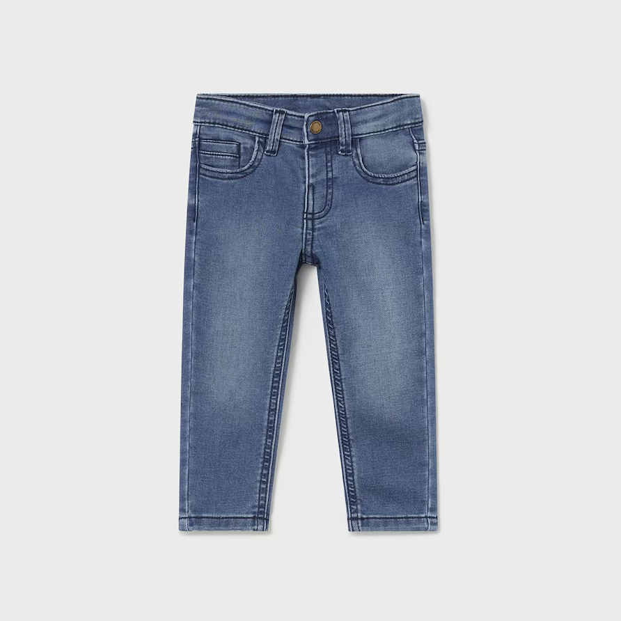 Introducing our Medium Wash Soft Denim Jeans for the trendiest baby boy! These medium wash skinny jeans provide a comfortable fit for your little one, perfect for playful days and stylish outings. Level up your little dude's wardrobe with these must-have jeans.