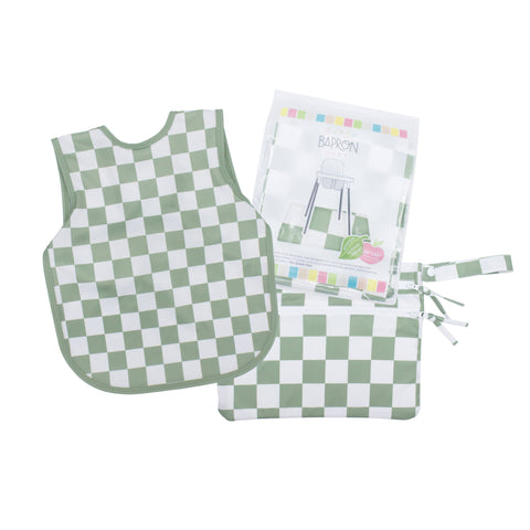 This best-selling “Bapron”, also known as a bib-apron hybrid, full-coverage bib, smock, or apron, is designed for comfort and safety. Because of their comfortable, secure-fitting horizontal ties and their full-coverage design, Baprons are the perfect companion for mealtime, art, and sensory play! Our fabric is a durable-yet-soft waterproof fabric that is quick-drying, stain resistant, machine washable, and 100% certified baby-safe (free of harmful chemicals and safe for even the most sensitive of skin). BapronBaby Baprons are made entirely of high quality eco-friendly fabric.