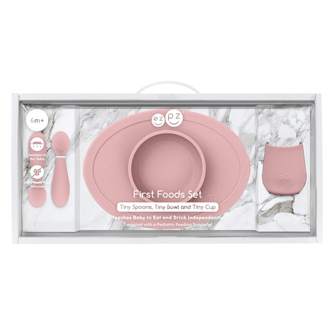 Most parents introduce solids / first foods to their baby at 4 to 6 months of age. This experience can be fun, but it also can be messy, stressful and overwhelming. The First Foods Set provides all of the developmental tools you need to set baby up for mealtime milestones + success!