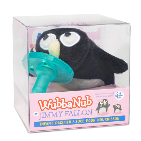 The Mama Penguin Wubbanub is the perfect companion for children! With an adorable design featuring a character straight from Jimmy Fallon's bestselling children's book, your child will love to snuggle up with the MAMA Penguin's endearing expression and big curious eyes. With its unique pacifier attachment, the Wubbanub ensures the pacifier stays close and won't be lost. MAMA measures approximately 6x5x3 inches. Recommended for newborns through six months. (Not suggested for babies with teeth or in teething stage).