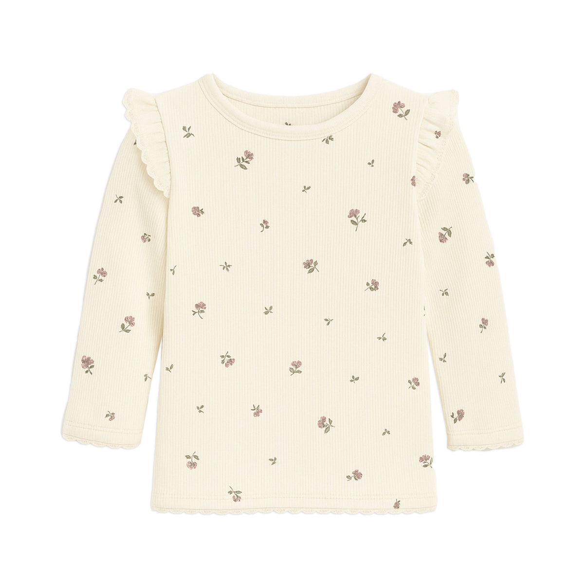 Soft, sweet, and easy to wear, the Rina Ribbed Ruffle Top is a go-to for cozy days and special moments alike. Made from stretchy organic cotton rib, it features delicate ruffled armholes with a picot stitch finish and a classic rib-bound neckline. Perfect for layering or pairing with flares or bloomers for a head-to-toe charming look.