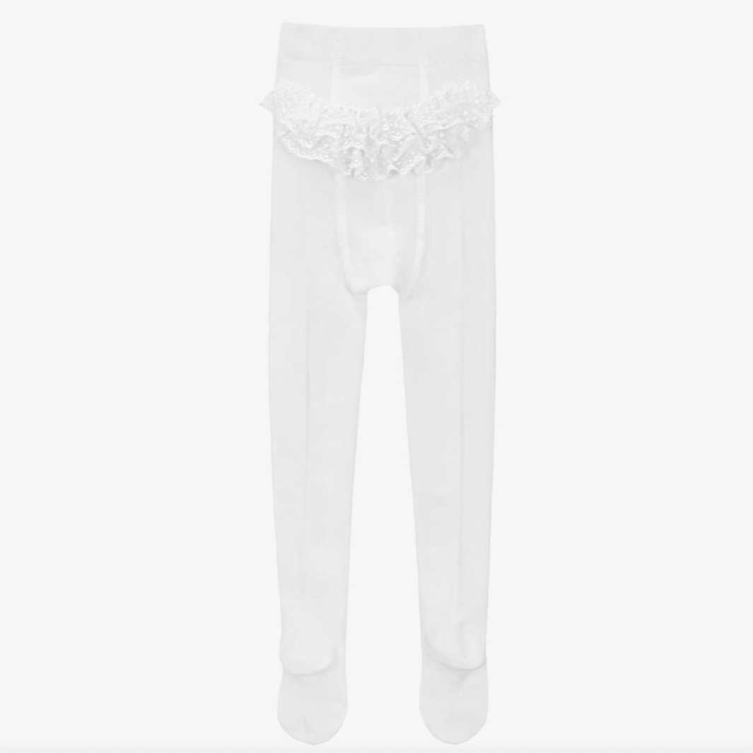 Add some flair to your baby's outfit with these newborn white ruffled tights! Perfect for any occasion, these tights will keep your little one's legs warm while making a statement. No boring baby clothes here!
