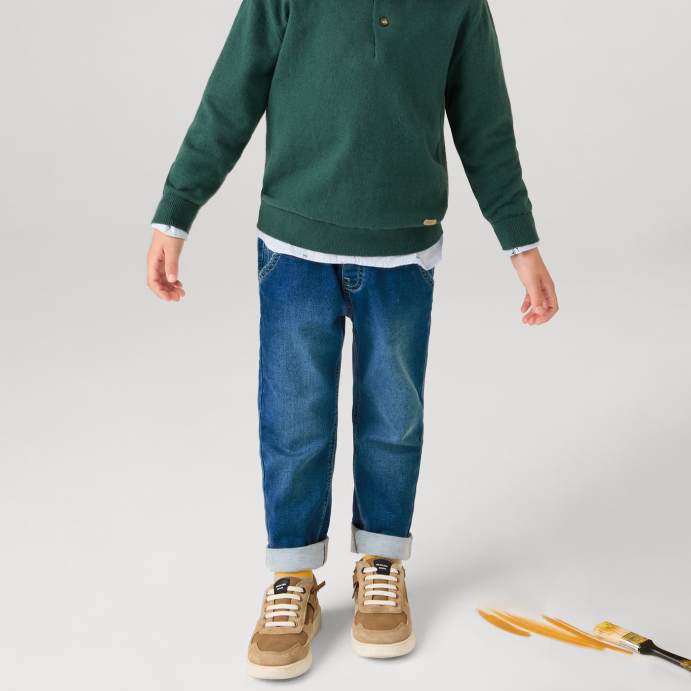 The perfect mix of comfy joggers and classic denim, these jeans are made for nonstop play and everyday style. Featuring a soft stretch fabric with just the right amount of give, they move with your little one through all of life’s adventures. The elastic waistband with drawstring ensures an easy, pull-on fit (no fuss, no buttons!), while the jogger-inspired cut keeps things cool and modern.