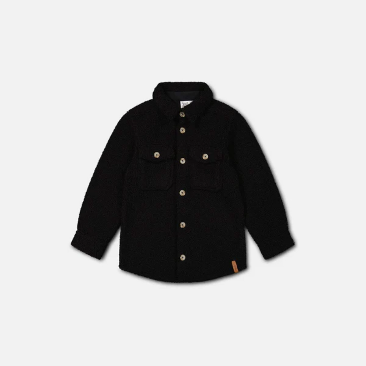 Introducing the Anthracite Sherpa Overshirt - the perfect choice for all your fall adventures. This black sherpa jacket is not only cozy, but also made from 100% polyester for added durability. Stay warm and stylish all season long!