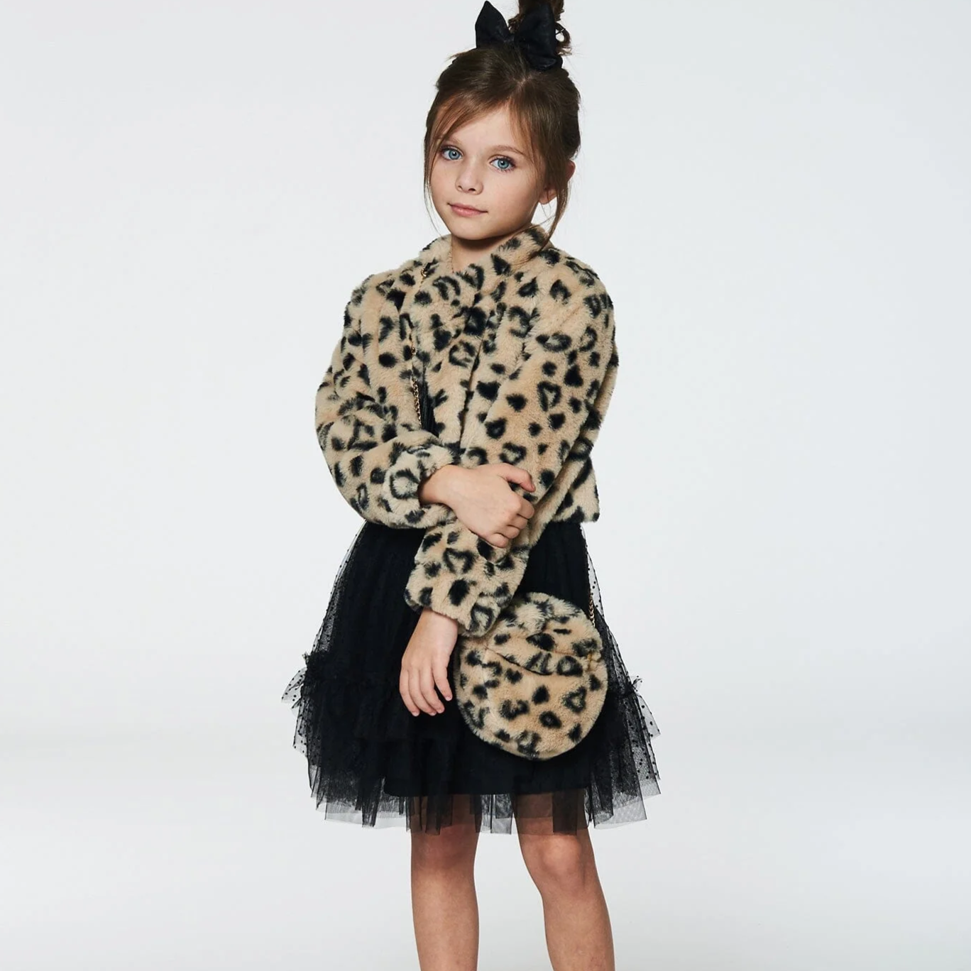 With a cropped fit and an ultra-soft feel, our Printed Faux Fur Jacket Leopard makes any outfit a bit more chic! Featuring an allover leopard print, this cozy layer has long sleeves with elastic cuffs, a mock neckline, and a curved hem. Team it with jeggings and a solid black top for laidback days or for pair with our Anthracite Sleeveless Tulle Dress for more special occasions!