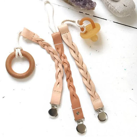 Keep your baby's paci close and stylish with this chic Boho Leather Paci Clip! Crafted from luxe tan leather, this adorable paci clip looks great and does its job, all with a touch of boho flair. Twice the fashion, half the fuss!