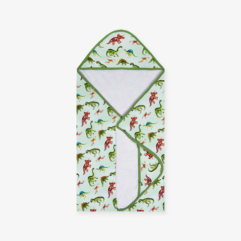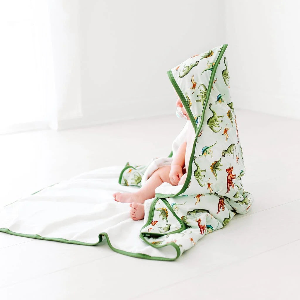 The Buddy Hooded Towel is perfect for your little one, from newborn to toddler! With a fun dino print design, this bath towel will make bath time a blast. Made with a soft and absorbent blend of 95% bamboo viscose and 5% spandex on the exterior, and 70% bamboo viscose and 30% cotton terry on the inside. Keep your kid cozy and dry in style! (Roaringly cute!)