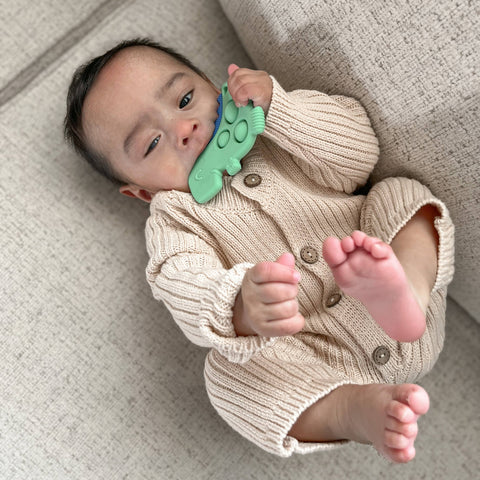 Chew on this! A pop of personality: a teething bestie and baby sensory toy all-in-one! Our Itzy Pop™️ push bubble toy is the perfect way to engage your little one’s mind and senses. The push pop movement and sounds will keep baby’s attention while the raised silicone dimples gently soothe sore gums.