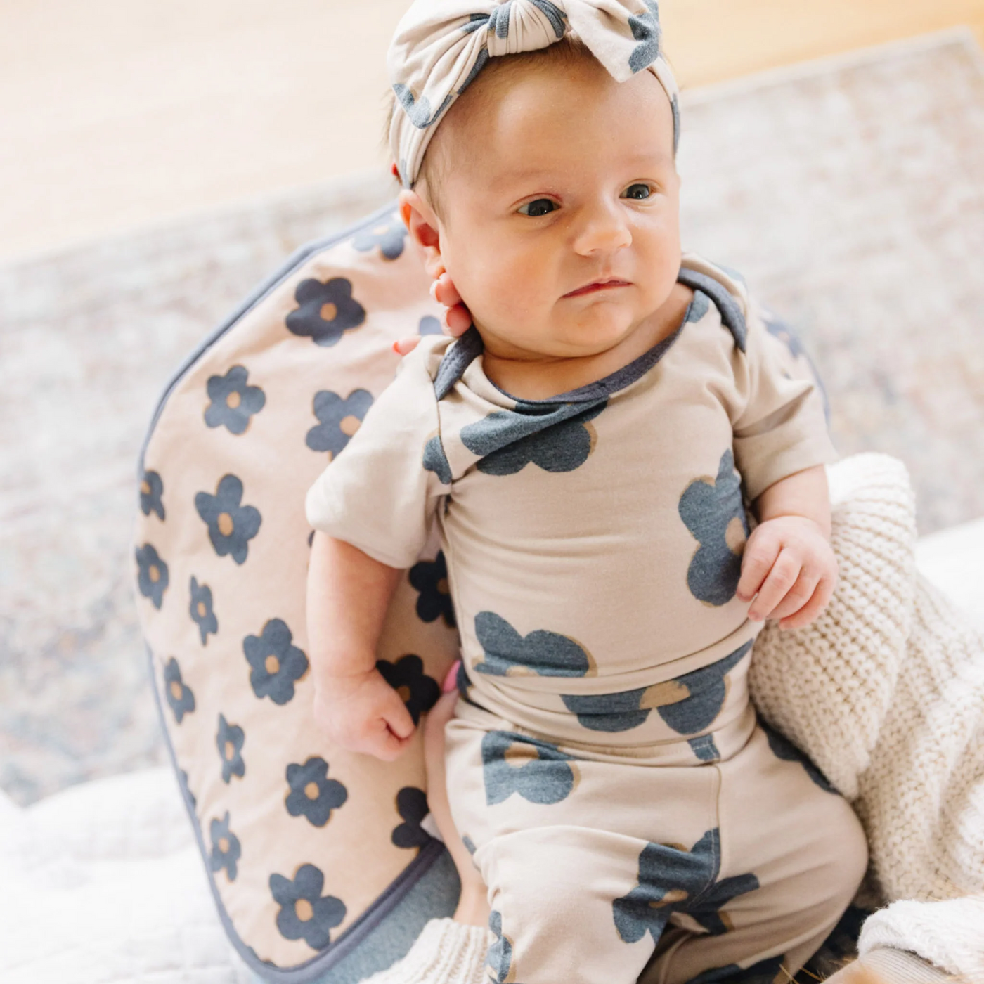 Our burp cloths are created with 100% ultra-soft cotton layers on the front (patterned) and back. You can feel confident that baby will feel cozy against your shoulder while burping.