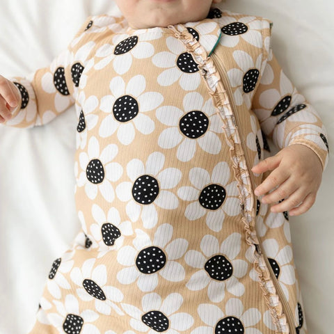 Our Reagan Sleep Sack is perfect for a warm and comfortable sleep. Crafted with ultra-soft and breathable viscose from bamboo, this sleeveless ruffled sleep bag is complete with our signature teal lining for extra warmth. With a 2-way zipper and extra-long construction, your baby will stay safe and snug for years to come.