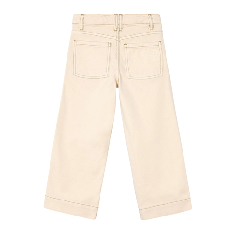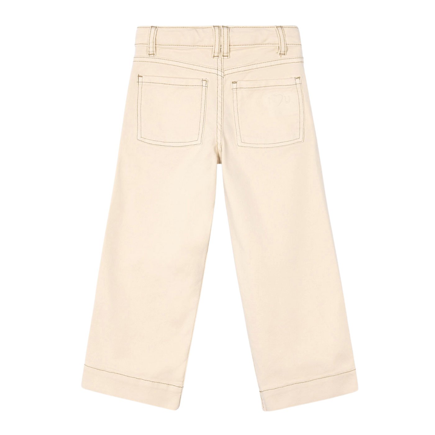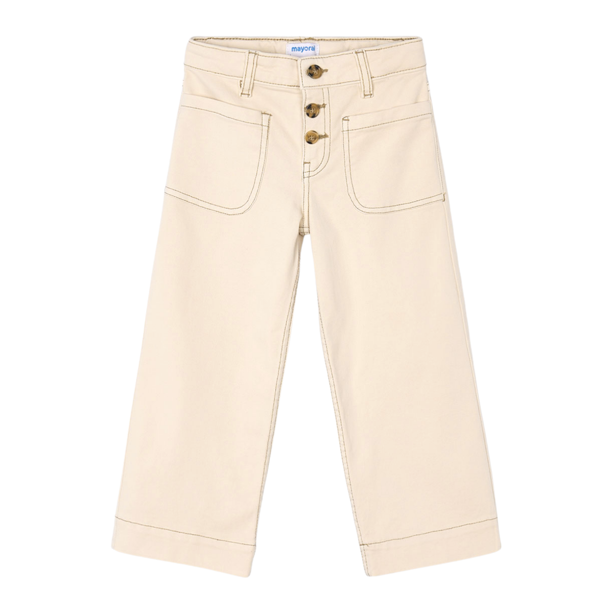 These wide-leg pants for girls are designed for both comfort and durability, making them perfect for everyday wear. Crafted from soft, resistant twill fabric, they feature a zip and button closure along with an adjustable elastic waistband hidden inside for the perfect fit. Functional front and back pockets add practicality, while decorative buttons at the waist bring a stylish touch.