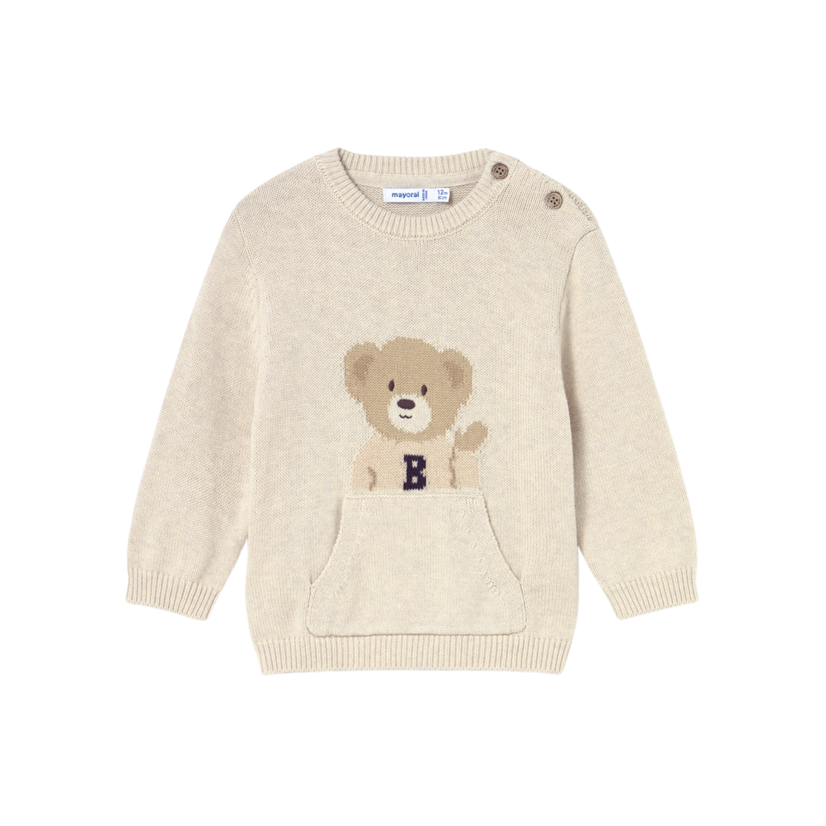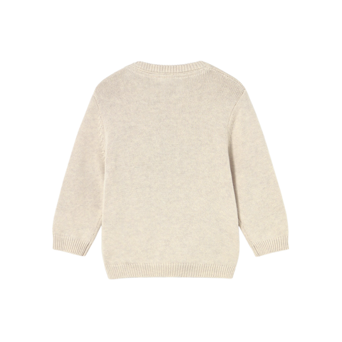 A cozy classic with a playful twist, this baby sweater is made for snuggles, playtime, and everything in between. Crafted in a soft cotton blend with a touch of wool, it keeps little ones warm while feeling gentle against their skin. The sweet bear motif peeking out of the pocket brings instant charm, while button closures at the shoulder make dressing a breeze.