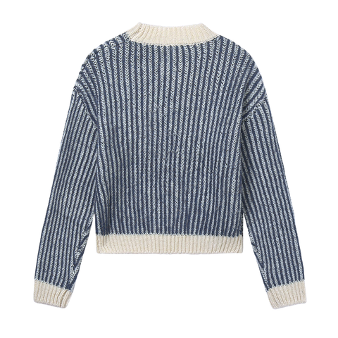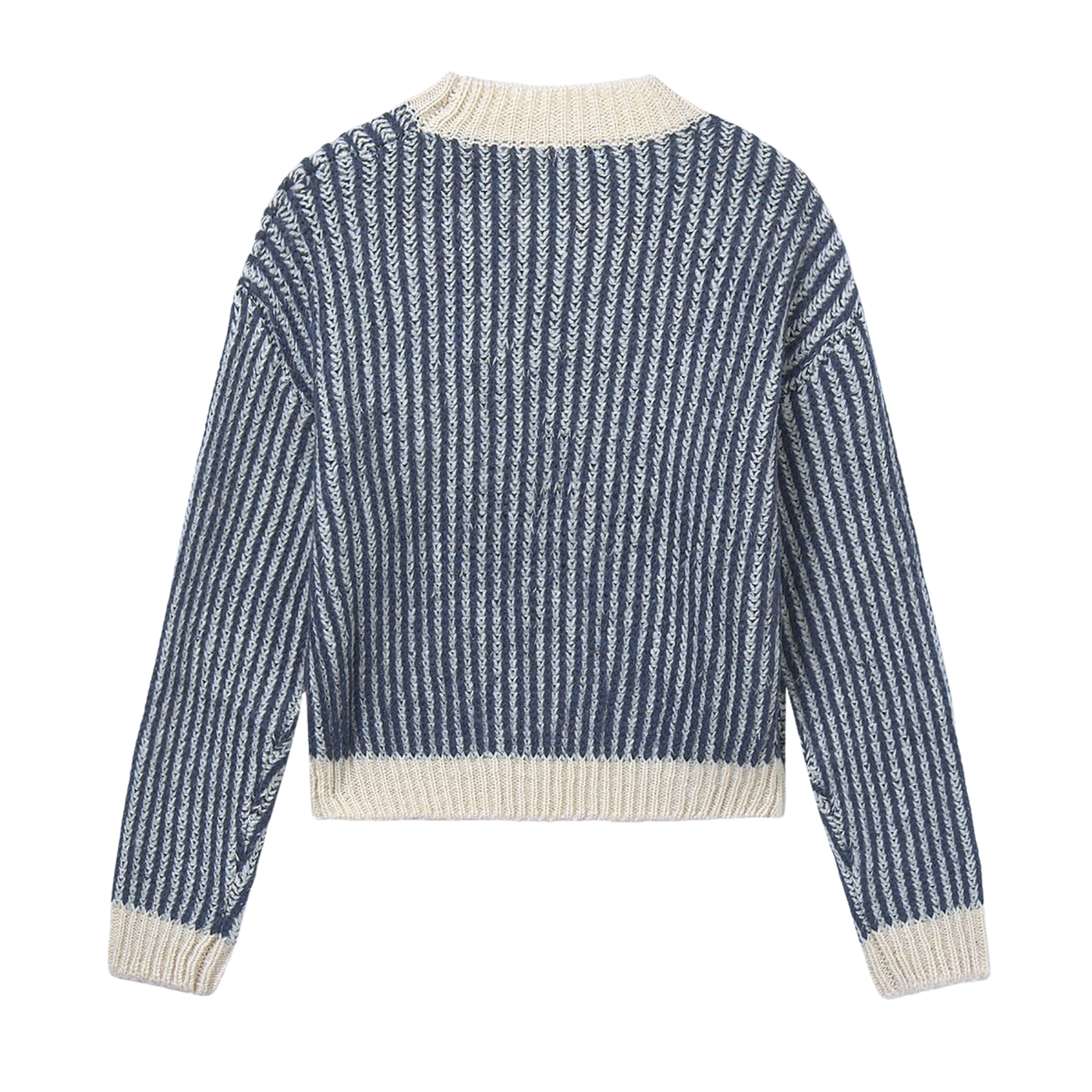 A cozy classic with a modern twist, this long-sleeved sweater for girls features a round neckline and a two-tone ribbed knit design. The contrasting cuffs, hem, and neckline add an extra touch of style, making it perfect for pairing with skirts, jeans, or trousers all season long.