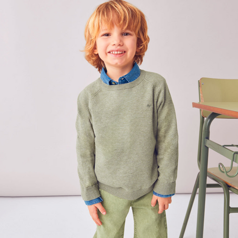 This kids’ pistachio sweater is a wardrobe essential that goes with everything from jeans to chinos. Perfect for school days, family outings, or layering during chilly weather, it’s a go-to piece you’ll reach for again and again.
