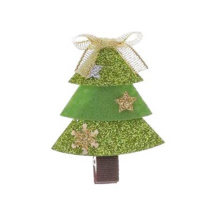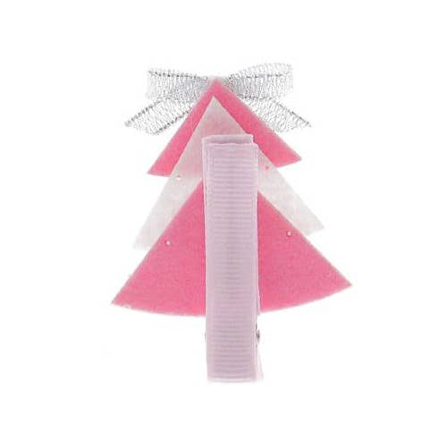 Meet our festive pink Christmas Tree hair clip! Covered in glitter and a bow, this is the perfect festive accessory for your little girl and her holiday outfit!