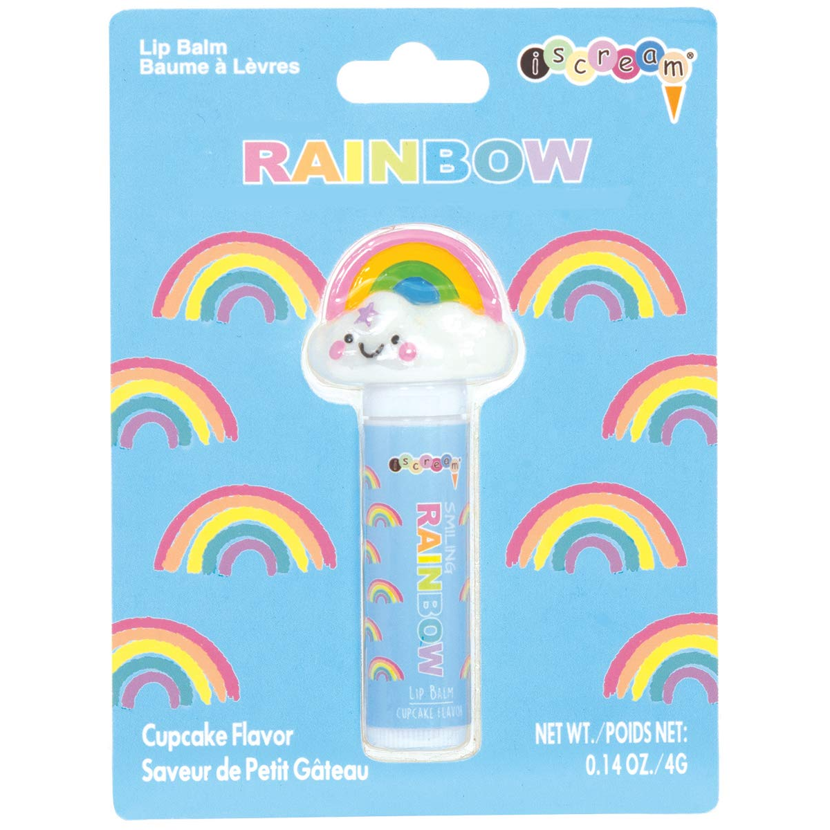 Bring some color to your skin care routine with this rainbow lip balm! With a smiling rainbow charm on the cap, this cupcake-flavored balm is perfect for bringing some sweetness to your cosmetic collection.