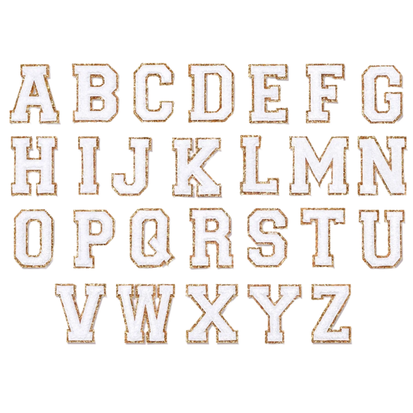Properly Marked Chenille Varsity Letters are approximately 2.5 inch height and are 3M 'peel & press' self adhesive. Add them to our nylon makeup bags, backpacks, tote bags and you will have the best DIY project that you will be able to use over and over. Get creative and have fun with these patches! Put on phones, a jean jacket, handbags, stadium purses, neoprene bags and more!