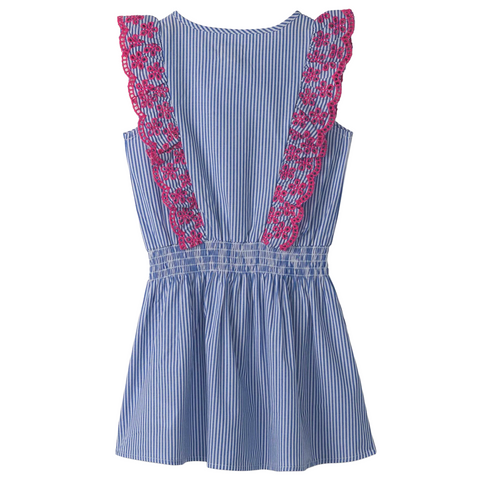 This girl's Pinstripe Ruffle Dress is a charming choice for any occasion! Made from soft cotton, this dress features delicate pinstripes and playful ruffle details that add a touch of elegance. The lightweight fabric ensures comfort and freedom of movement, perfect for parties, playdates, or picture days. Pair it with sandals or ballet flats for a look that’s both stylish and sweet.
