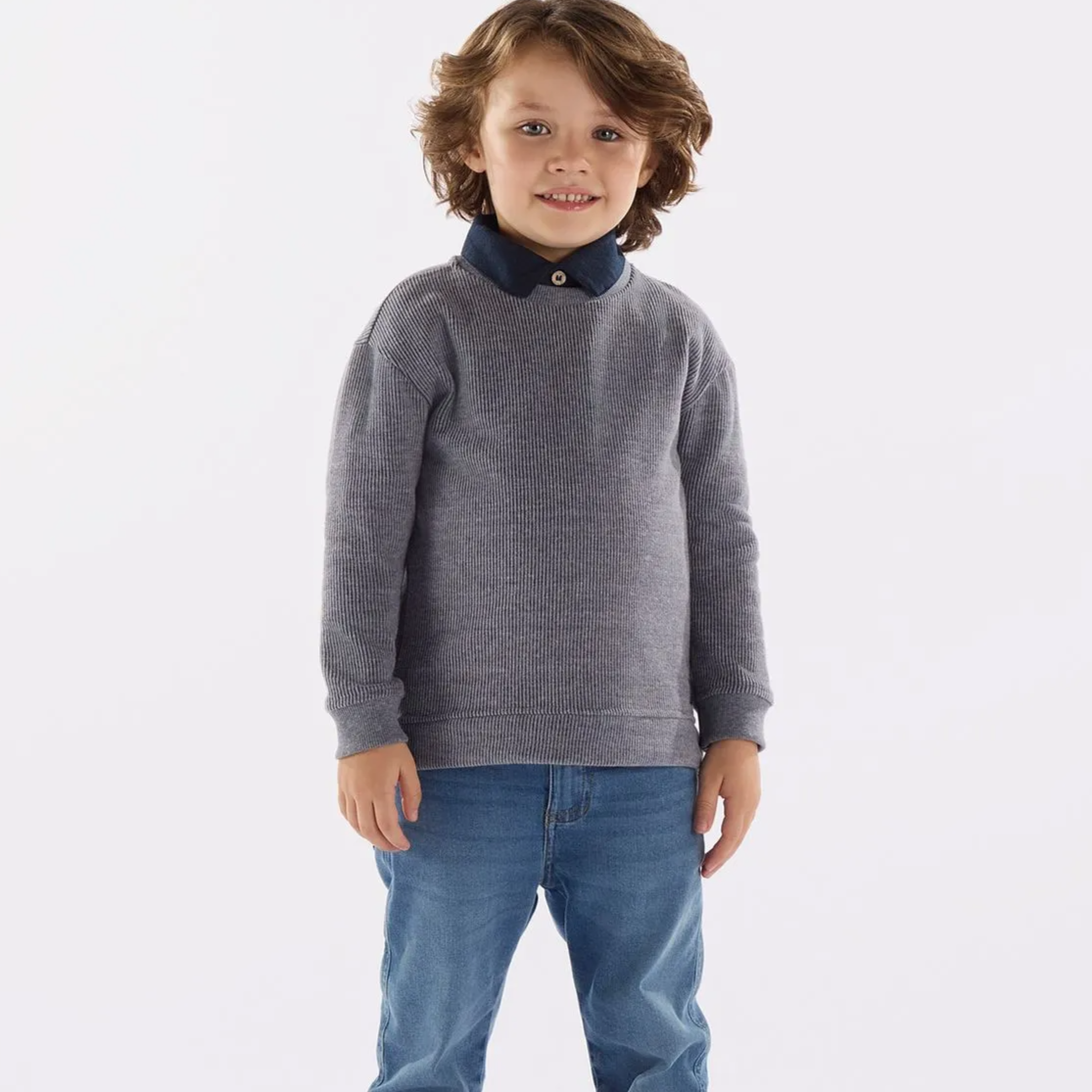 A soft, versatile layer for chilly days, this ribbed boys’ sweater is crafted from a plush polyester-cotton blend for warmth without bulk. Designed with a classic crew neckline, ribbed cuffs, and hem for a snug fit, it’s perfect for pairing with jeans, joggers, or chinos for an effortlessly put-together look.