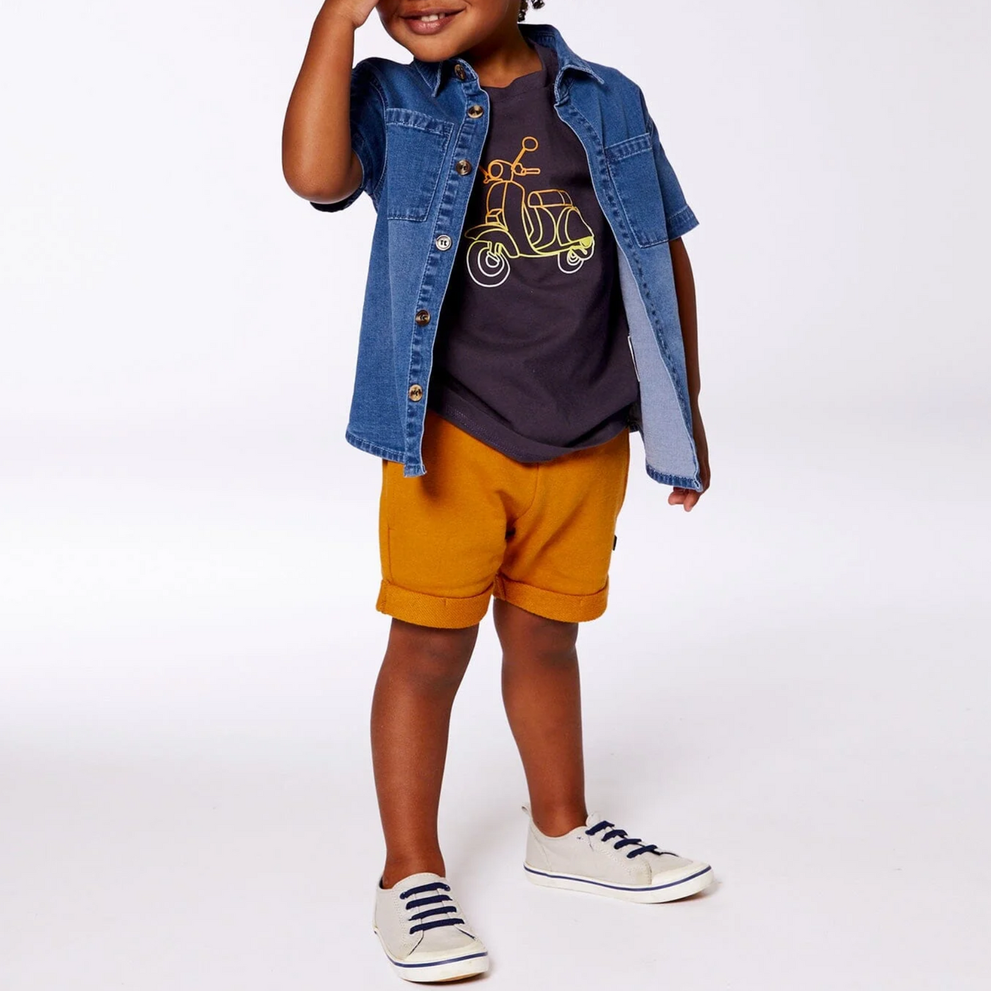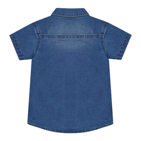 This stylish kid boy's short sleeve button-down denim shirt is a must-have for any young trendsetter. Crafted from soft stretch cotton denim, it ensures all-day comfort while allowing for easy movement. The classic button front placket and two patch pockets on the chest add a touch of charm, making it perfect for both casual outings and family gatherings. With a composition of 98% cotton and 2% elastane, this shirt combines durability with a comfortable fit, making it an essential addition to your little one's wardrobe.