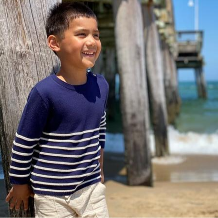 Always one of our best sellers this navy and cream striped sweater. Knitwear that's soft and comfy to wear and is a great layering piece for all season long. Be prepared when the evenings are a bit cooler or your little man is of on adventures on the ocean! Made from 100% Cotton.