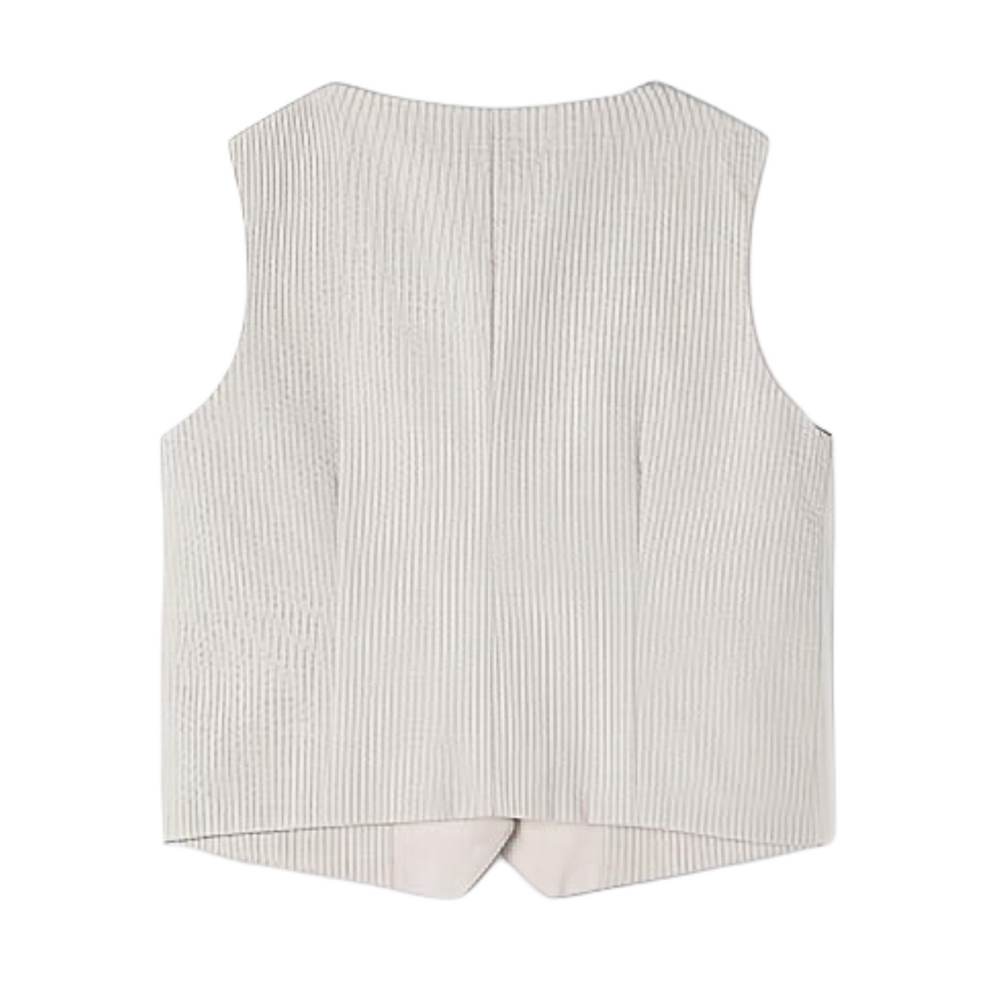This boys' tan dress vest is crafted from a comfortable cotton blend with a touch of linen for a soft, woven feel. It features functional front pockets, a seersucker back for a lightly textured contrast, and fastens with three buttons. Last chance to buy this stylish piece, available in limited quantities.