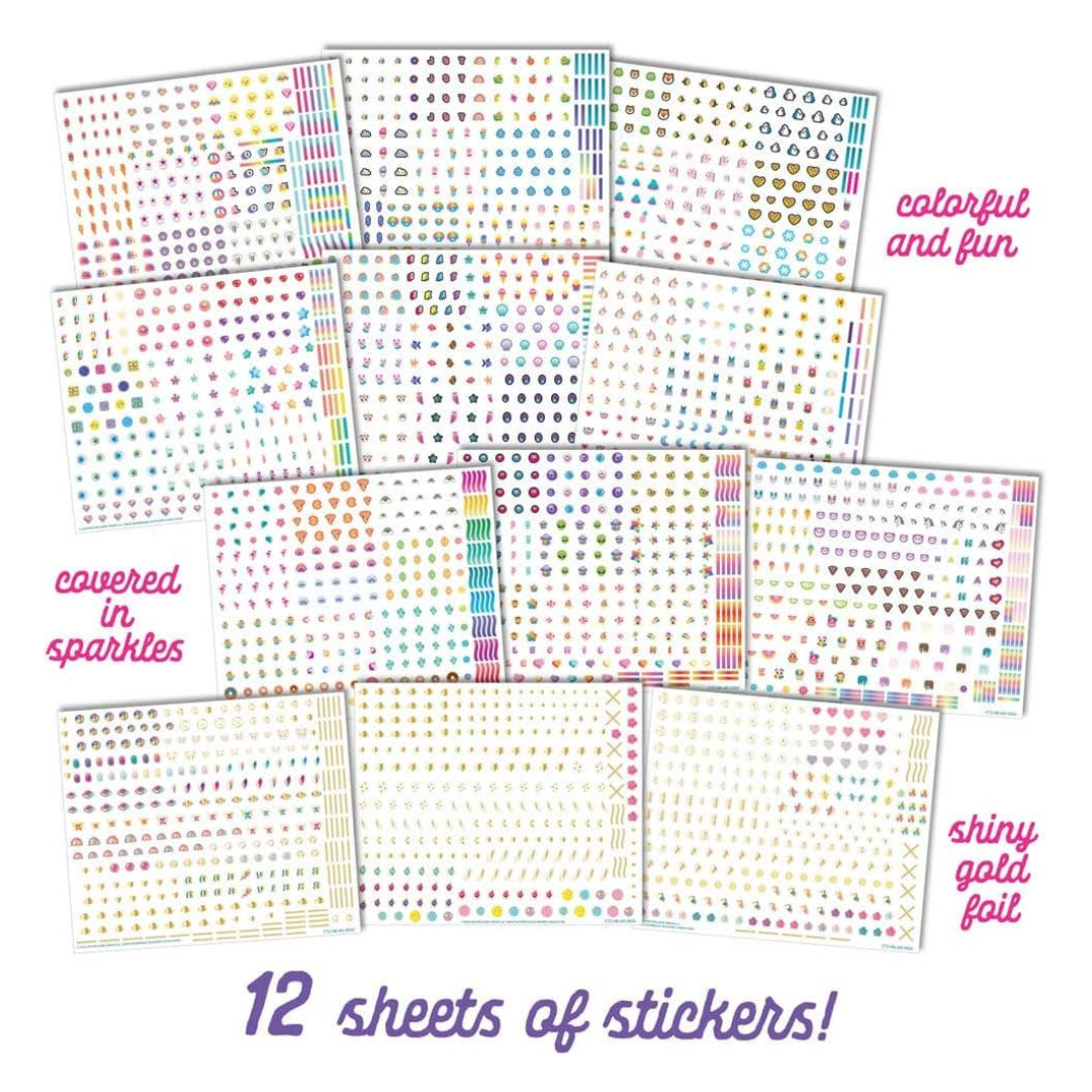 🌟 3000+ Nail Art Stickers: A vibrant array of designs featuring furry friends, colorful emojis, tasty treats, gold foil, and sparkly glitter!