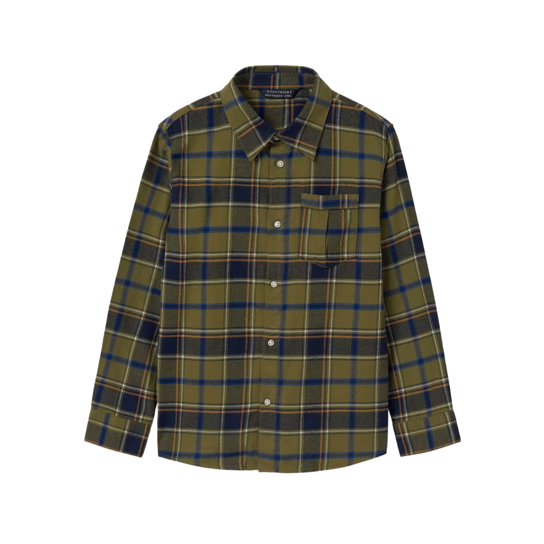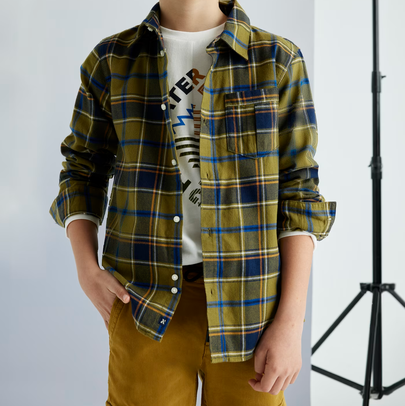 This plaid shirt is made from 100% cotton flannel, ensuring ultimate comfort and quality for your little guy. Perfect for any occasion, this khaki olive shirt is a must-have in any stylish boy's wardrobe.
