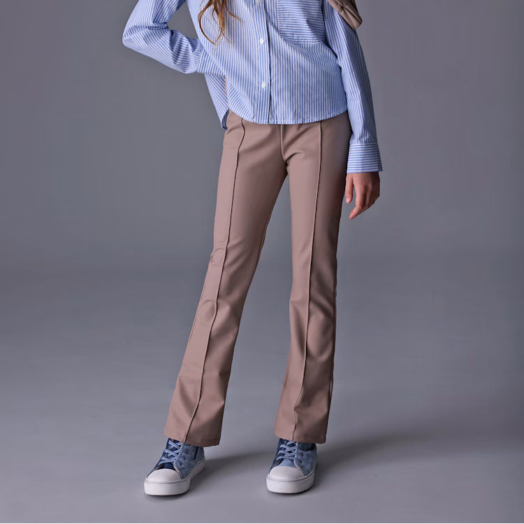 These soft and stretchy flare leggings in a warm mole brown shade are a stylish twist on a comfy classic. The flared leg adds a fun, fashionable touch, while the elastic waistband ensures a secure and comfortable fit for all-day wear.