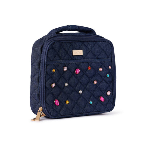Lunchtime just got a glow-up with this quilted denim insulated lunch box—the perfect mix of extra and essential. Designed to keep your food fresh while turning heads, it features sparkly bejeweled accents, a plush quilted exterior, and serious main-character energy whether you’re at school, the office, or on the go.