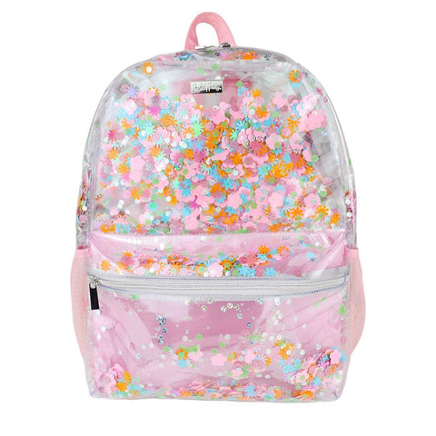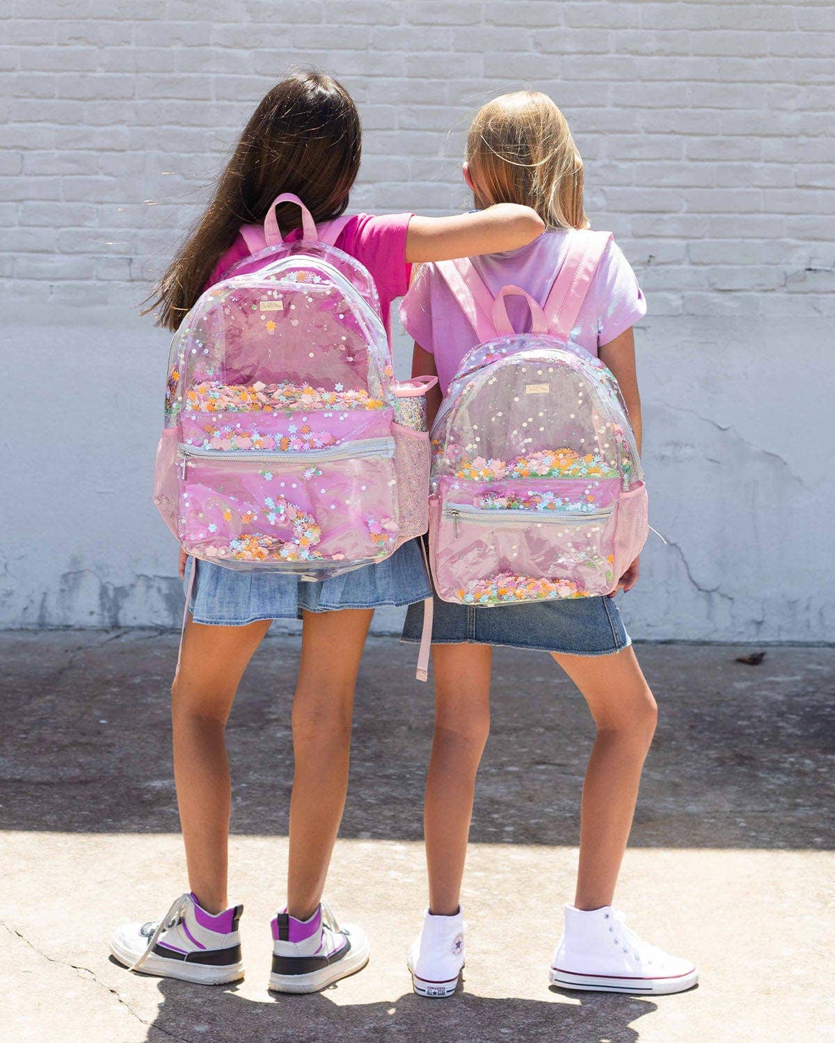 Bring on the Flower Power! This heavy-duty vinyl backpack is as fun as it is functional—perfect for school, work, travel, or everyday adventures. Filled with our signature multi-color flower-shaped confetti, it’s guaranteed to turn heads and spark smiles wherever you go. Whether you’re brightening up your commute, packing for class, or adding a playful pop to your outfit, this backpack is ready for it all.