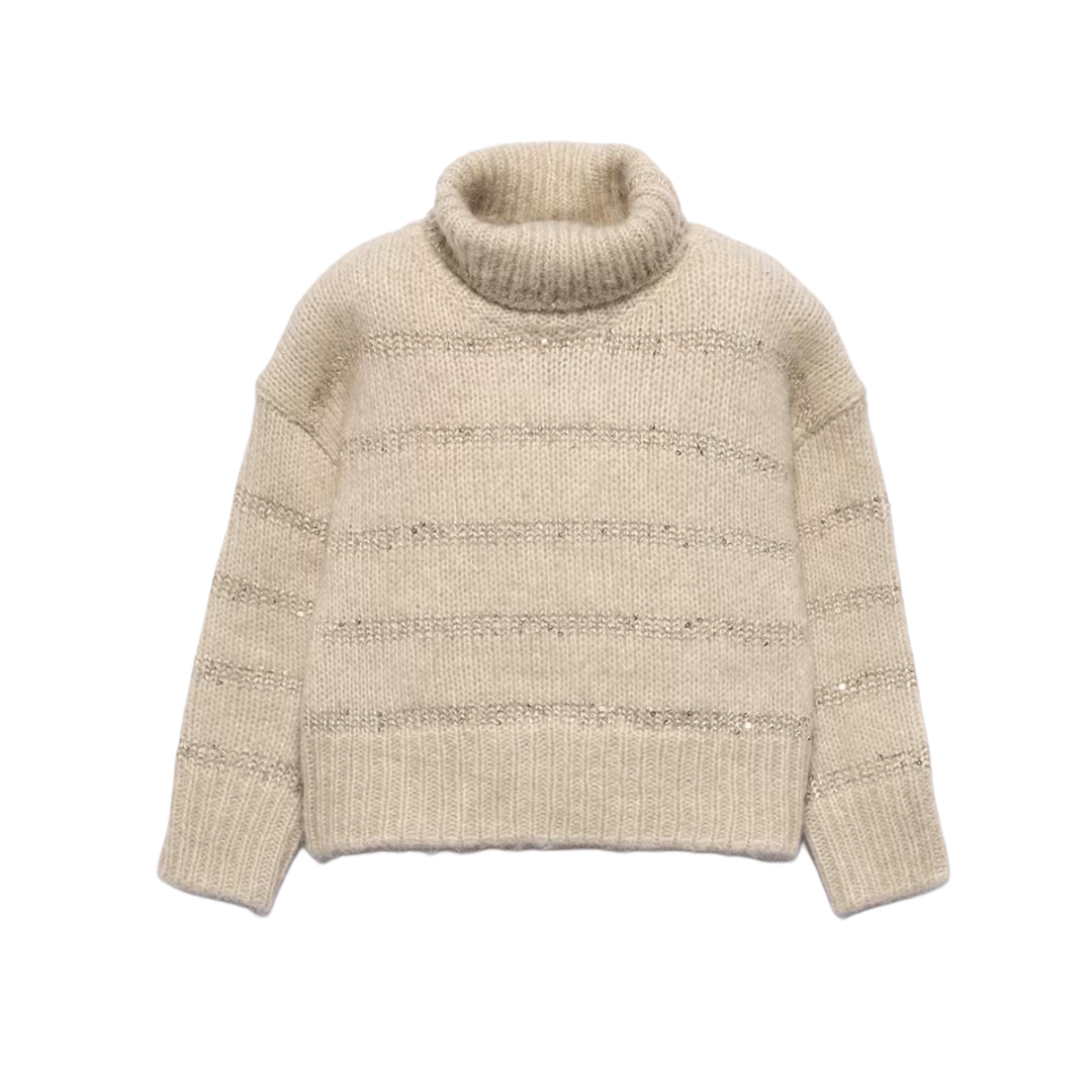 Wheat Sequin Stripes Sweater Sale