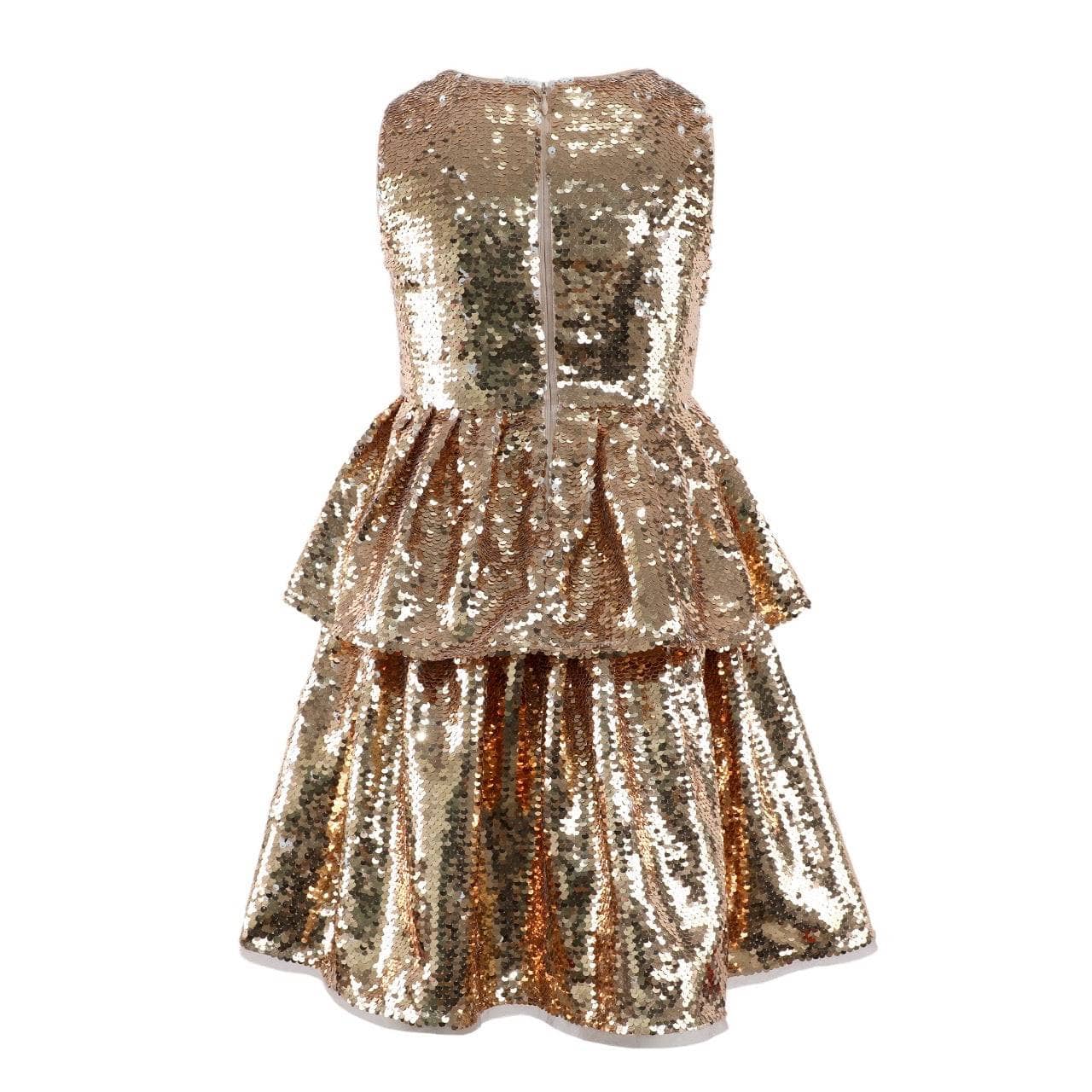 Turn every moment into a sparkling celebration with our stunning Gold Sequin Tier Dress! This show-stopping piece is designed for girls who love to shine — perfect for holiday parties, birthdays, special events, or just playing dress-up in style.