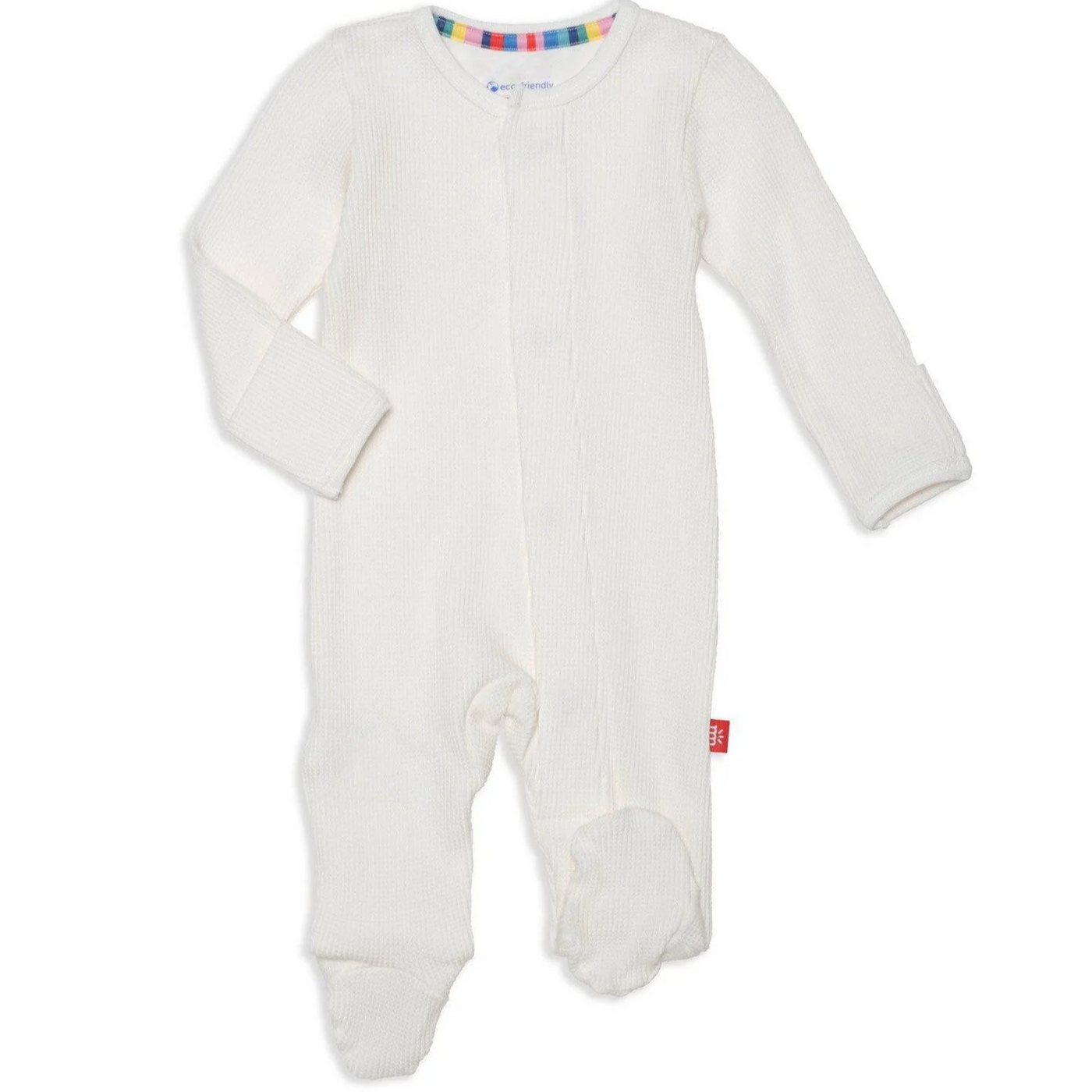 our parent favorite footie is an everyday (and night) essential with magnetic closures that make dressing easy. magnets are quick, quiet, and a lifesaver for middle-of-the-night changes. eco-friendly TENCEL™ modal is silky soft, breathable, and gentle on sensitive skin. temperature-regulating properties will keep warm in winter, you cool in summer, and oh-so comfortable year round.
