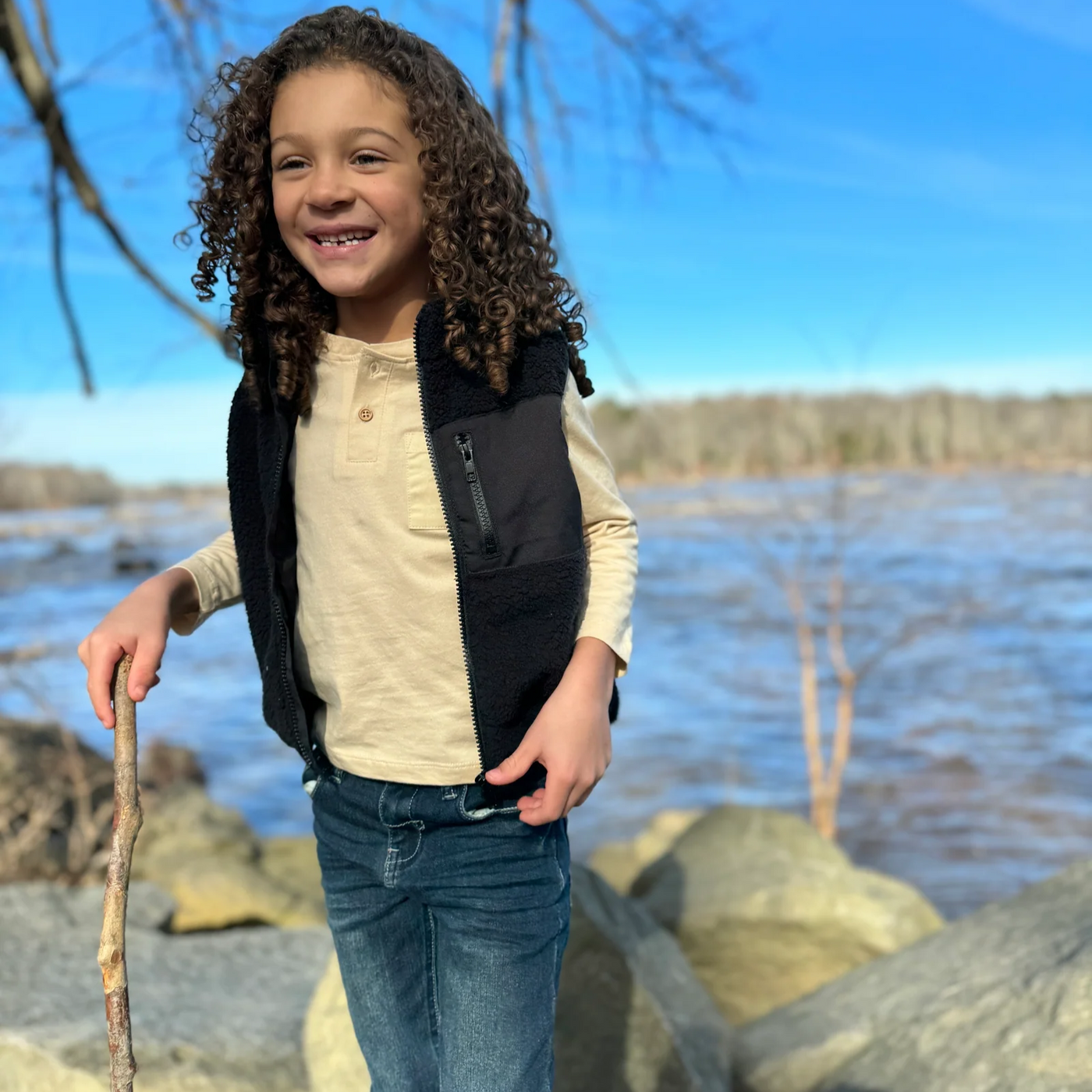 Featuring ultra-soft sherpa outer layer, and handy pockets, this vest is perfect for layering on chilly days. Ideal for school and outdoor fun!