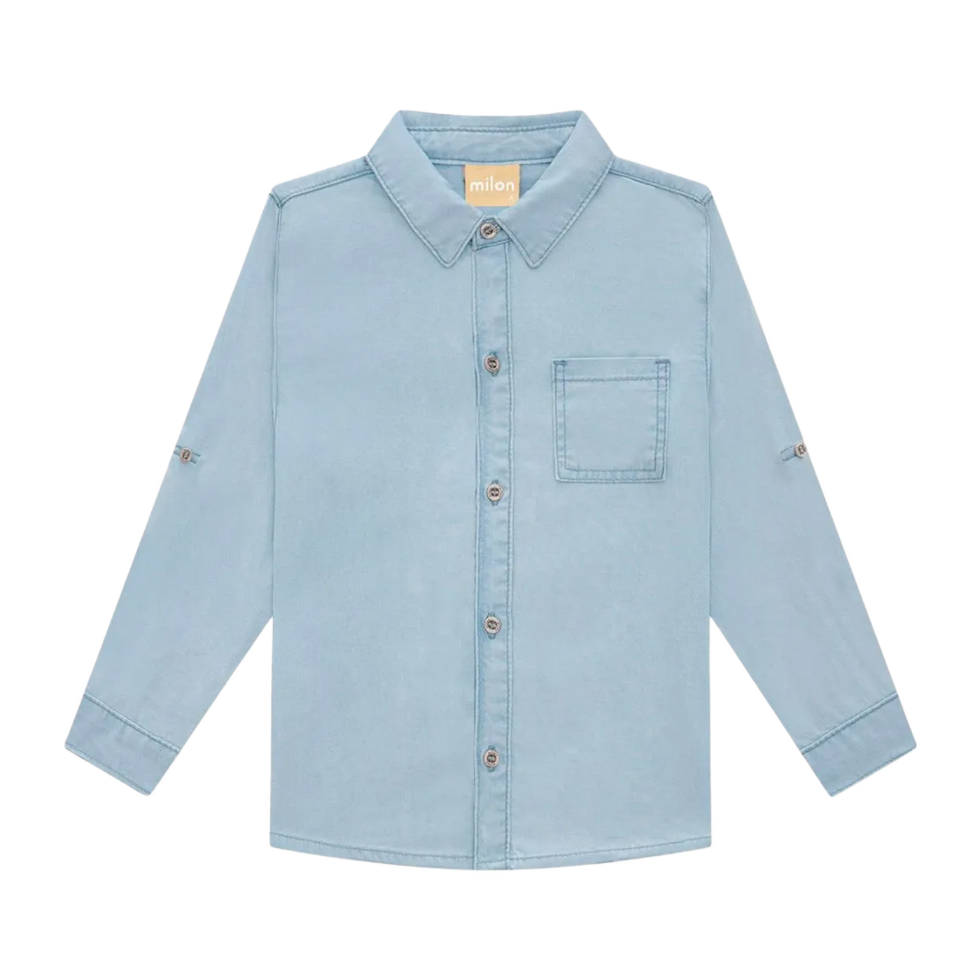 The Boys' Milon Denim T-Shirt is a versatile and charming addition to any little one's wardrobe. Crafted from 100% cotton denim fabric, it provides both comfort and durability. Its classic design is enhanced by practical features like the front button opening and buttoned cuffs, making dressing a breeze and ensuring a perfect fit. The long sleeves feature buttons at the elbows, making it easy to roll them up for a laid-back look. Plus, the chest pocket adds a stylish touch to the shirt. Perfect for creating fun and unique outfits for boys on any occasion!