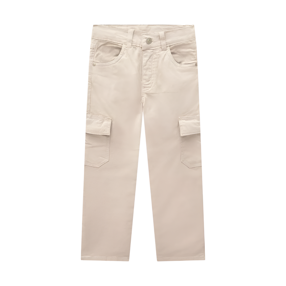 Get your little guy ready for action in these cool and comfy khaki cargo pants. Made with 98% cotton and 2% elastane, they have handy side and cargo pockets, plus a button and zipper fly for a secure and practical fit.