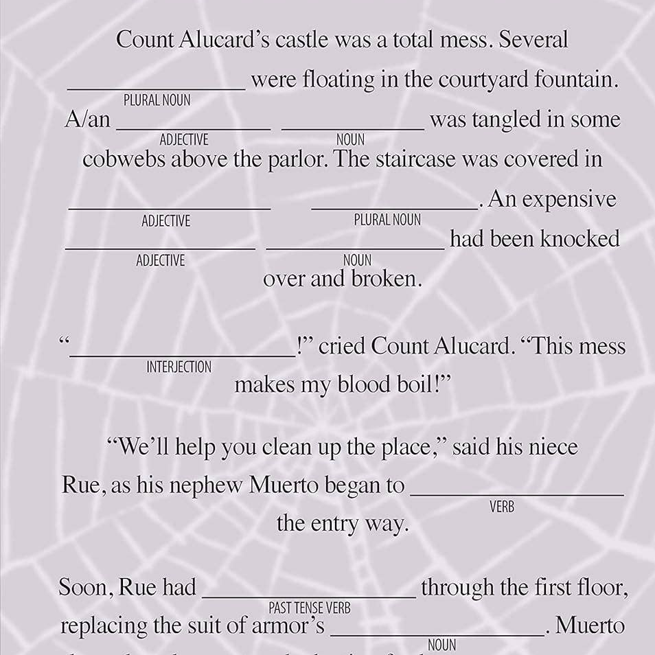 Get ready to write your own silly stories! Have a blast asking your friends and family for random parts of speech -- including nouns, verbs, adjectives, and more without peeking at the story. Once you have all the words ready to go, use them to fill in the blanks within the story and get ready for the giggles!