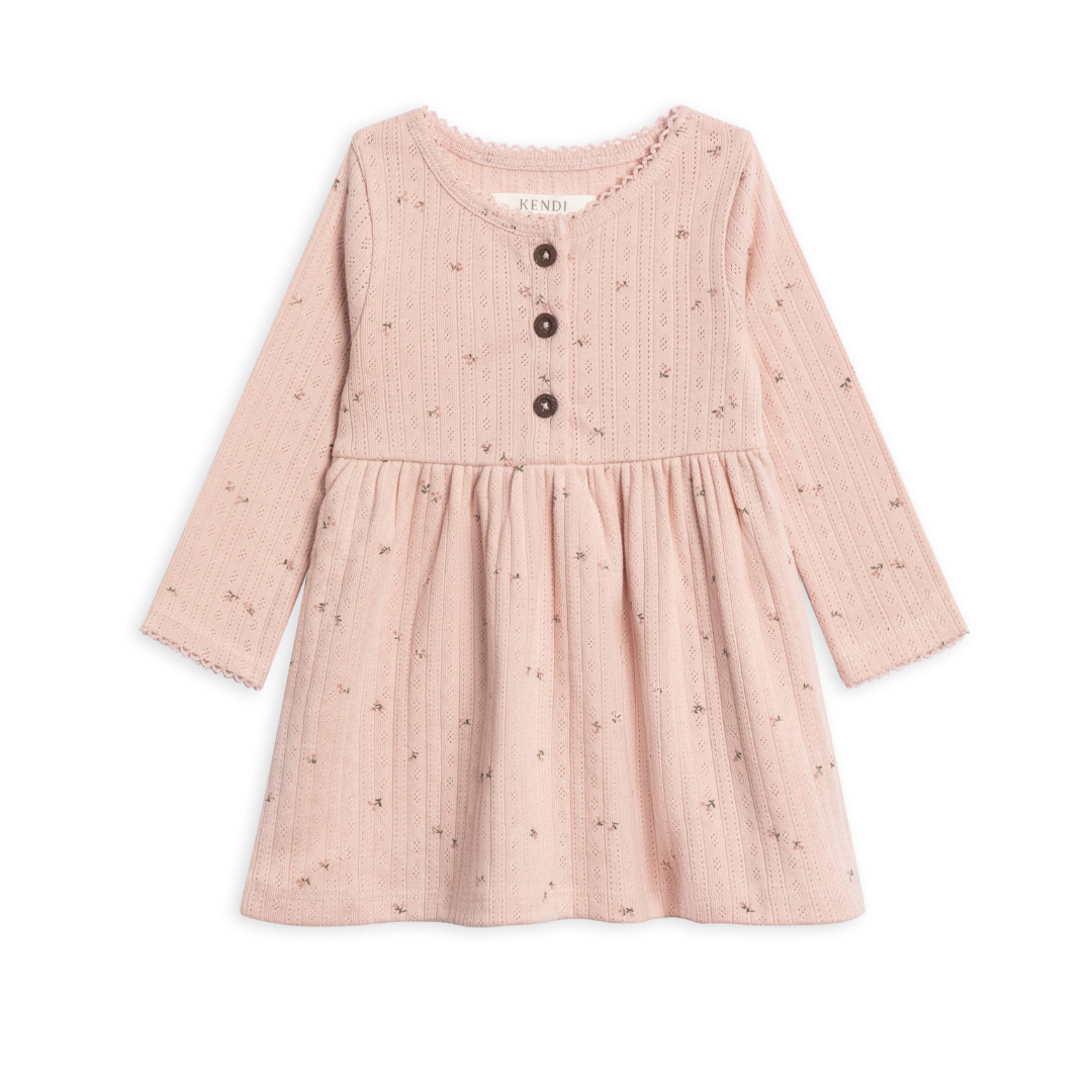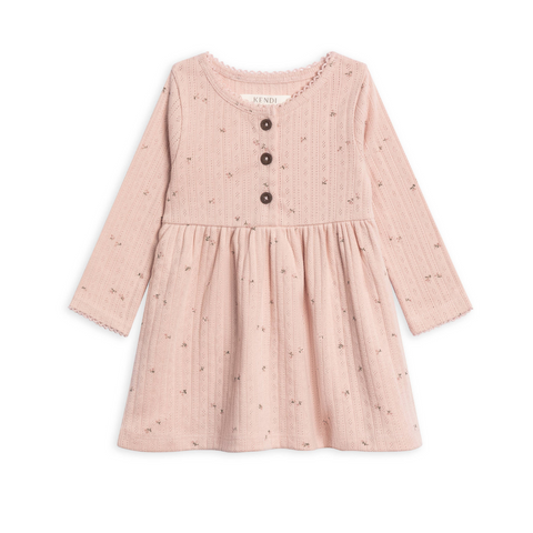The Bryn Brushed Pointelle Henley Dress is full of charm and softness, perfect for everyday adventures and special moments alike. Made from cozy organic brushed pointelle, this dress features a sweet picot edge along the neckline and sleeves, plus a wooden button henley placket for a timeless touch. The gathered waist seam adds gentle volume for twirls. Dress it up or down, it’s a go-to piece for every season.