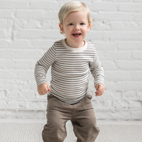 Bring your basic tops to the next level with our Rory Ribbed Long Sleeve Top! The organic cotton ribbed fabric ensures your babe is cozy all day long. Pair it with our Charlie Ribbed Joggers or Lennon Ribbed Leggings for a matching outfit.