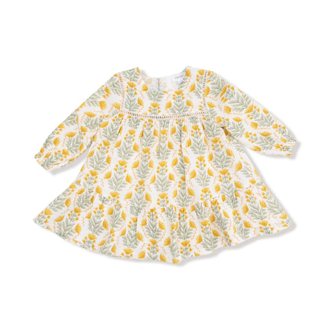 This Winter Dandelions Dress and Leggings set combines delicate details with everyday comfort, perfect for your little one’s playful adventures. The ladder trim dress is made from 100% organic cotton muslin, ideal for layering on chilly days. Soft, ribbed leggings crafted from a cozy blend of modal and spandex provide just the right stretch for all-day fun.