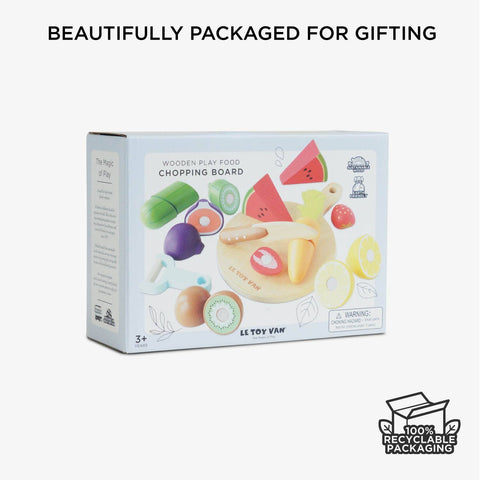 Chop, chop! Budding chefs will love preparing delicious meals with this delightful 18-piece chopping board set, a lovely addition to role play scenarios. Comprising a natural wooden chopping board, peeler, knife plus a selection of tasty looking fruit and veggies that can be ‘chopped up’ using the clever Velcro detailing. A great gift to encourage social skills, improve dexterity and fine motor skills.
